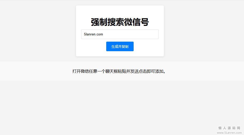 懒人源码网 » 【引流源码】微信强制搜索添加好友代码生成单页源码