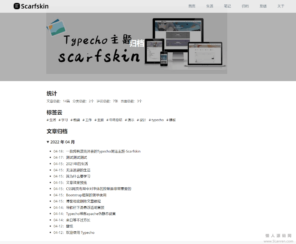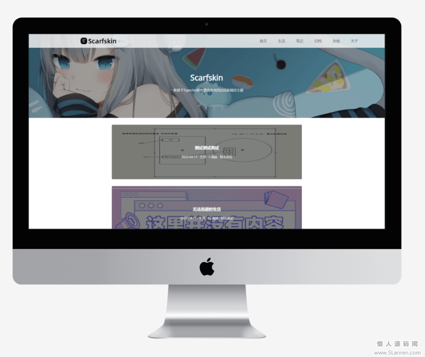 懒人源码网 » Typecho仿Mirages简洁主题一款拥有漂亮外表的-Scarfskin