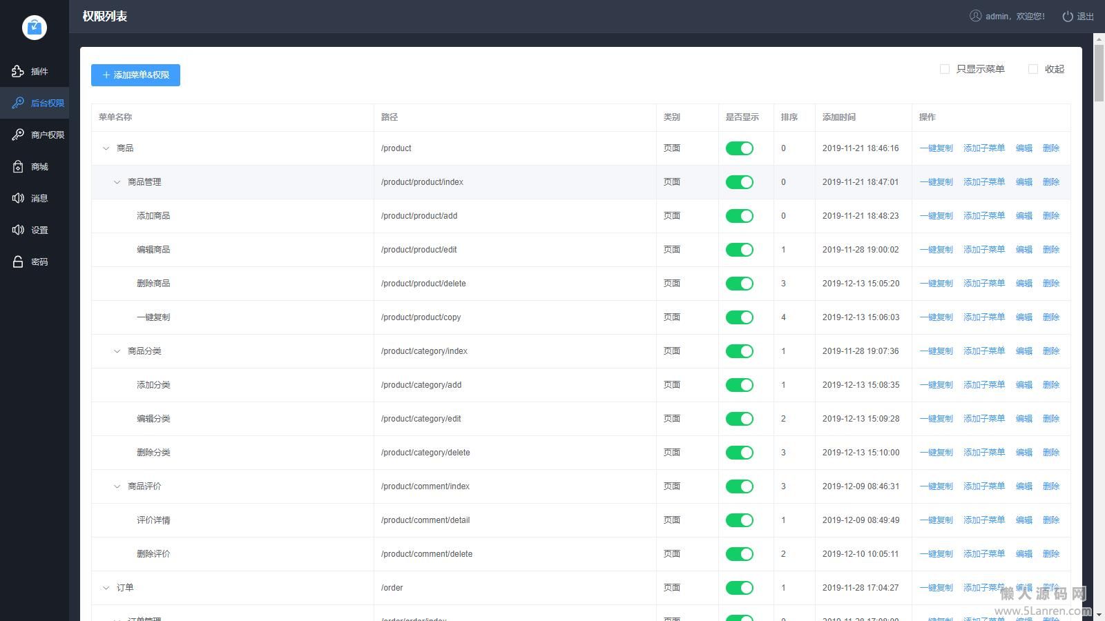 分类商品参数、知识付费、、积分、会员等级、小程序直播、页面DIY等功能,前后端分离全部开源。
