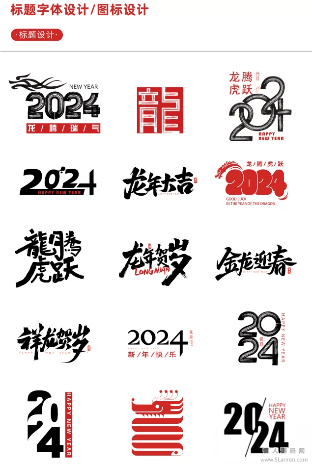 懒人源码网 » 非源码【新春设计素材】2024龙年艺术字源文件,整整60套设计龙年素材