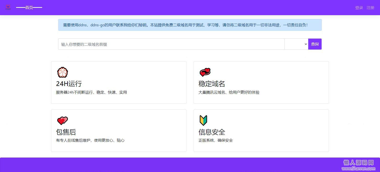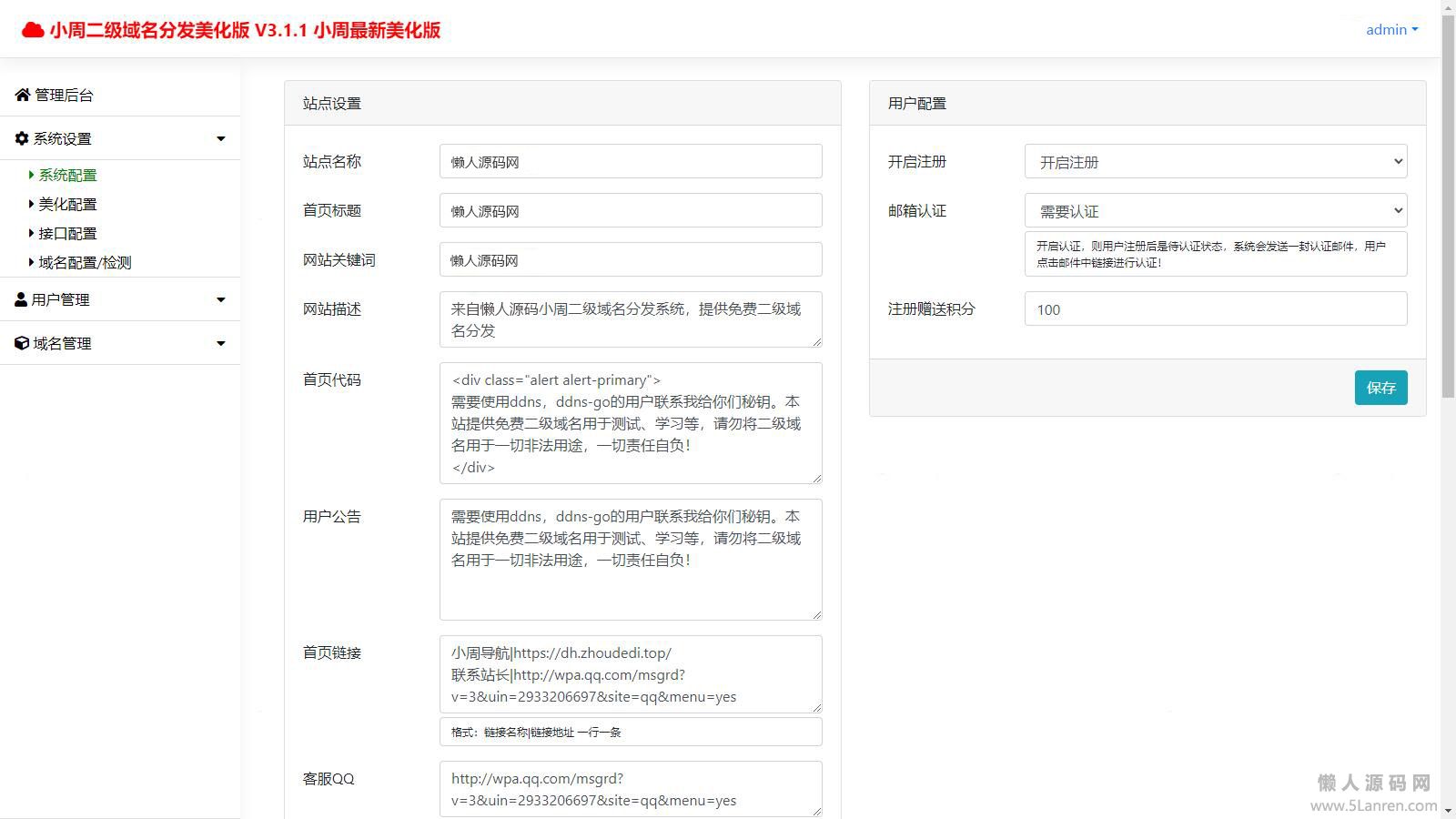 懒人源码网 » 【简单亲测】可对接易支付的二级域名分发源码