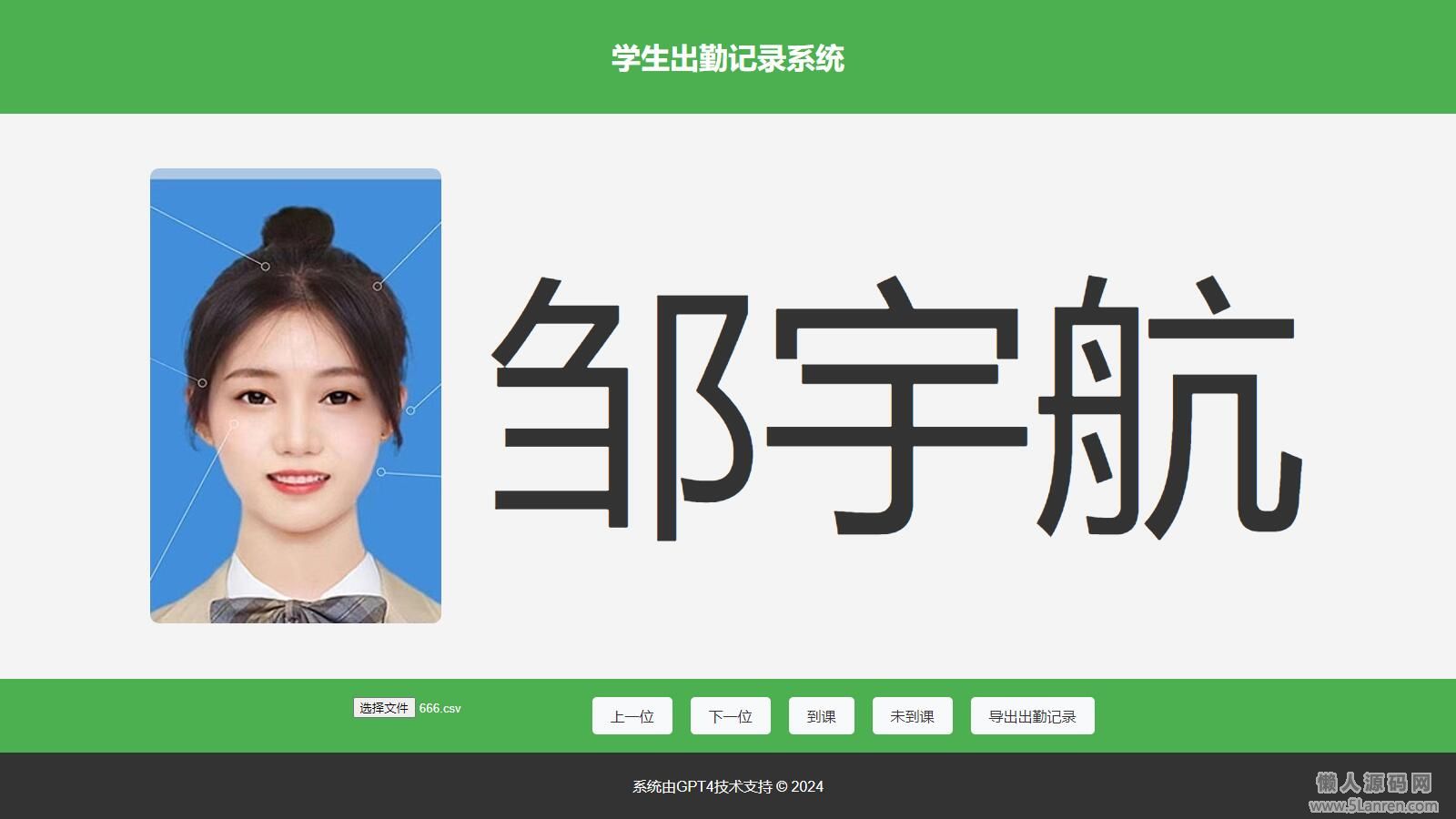 懒人源码网 » 【免费源码】大字体学生出勤记录系统网页源码1.0