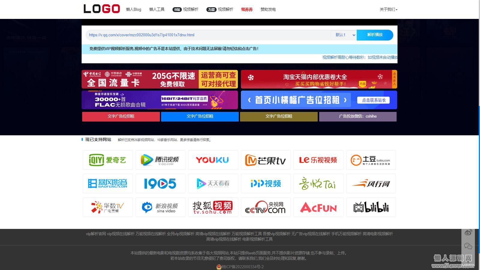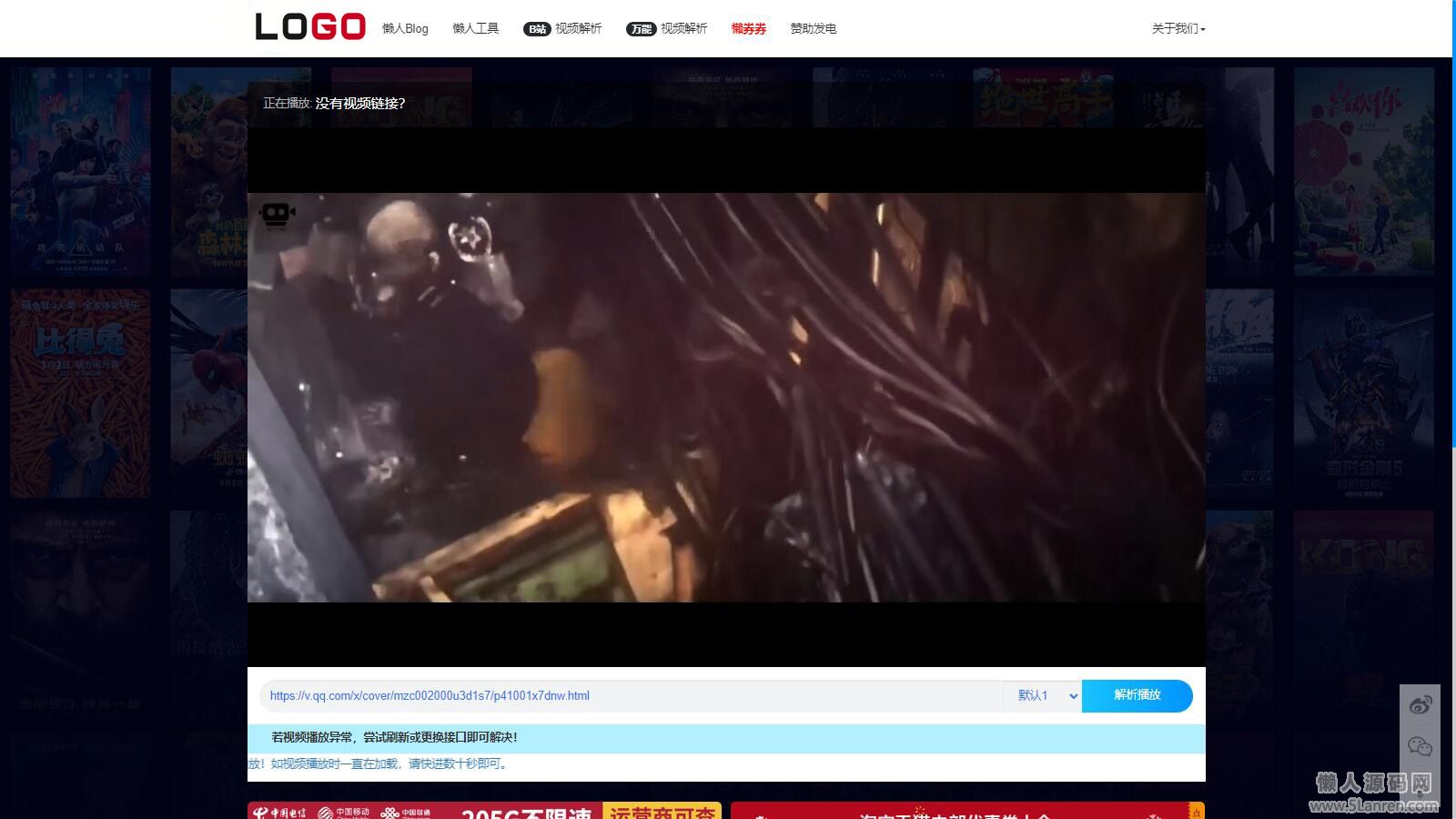 【上传即用】懒人影院官网VIP视频解析工具网站源码