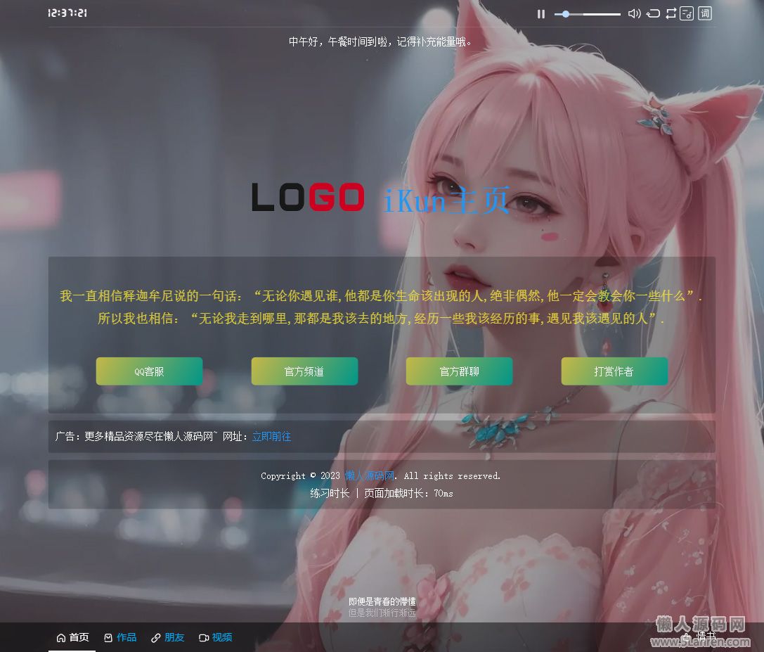 iKun主页 新2.0版本 无需数据库 带页面音乐版本~,菜鸟群内小伙伴想要这个主页,给大伙打包出来了,需要的话直接吧,无需数据库,没有后台哦!