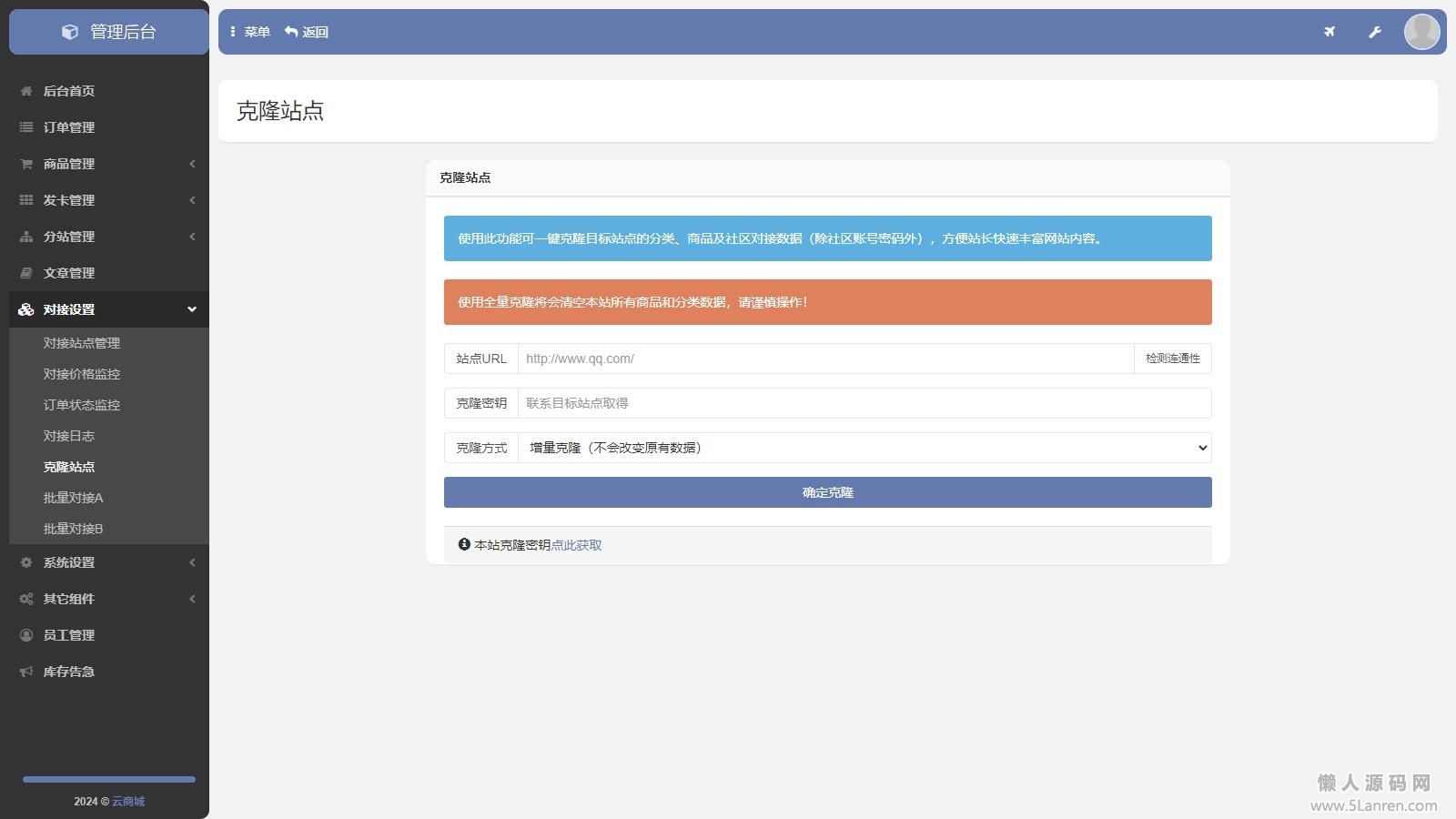 可一键克隆社区分类商品的发卡站源码
