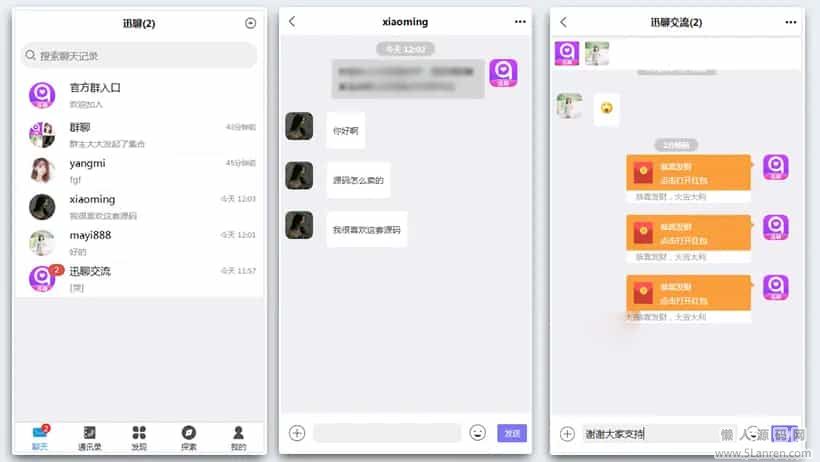 懒人源码网 » 【即时通讯im】官方群/交友软件/完善收藏笔记/客服聊天/安卓+ios/聊天APP源码