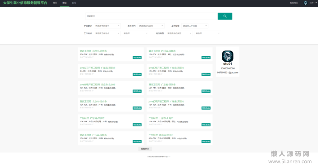 懒人源码网 » SpringBoot求职招聘系统(管理员+企业+学生) 牛角二次开发