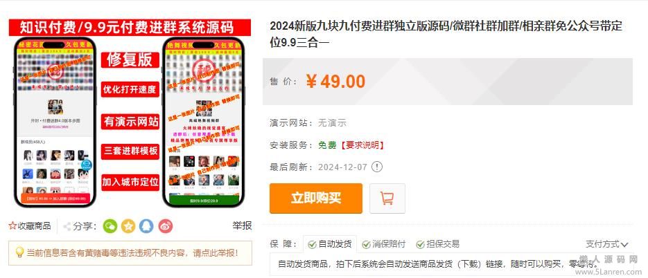 懒人源码网 » 2024新版九块九付费进群独立版源码/微群社群加群/相亲群免公众号带定位9.9三合一