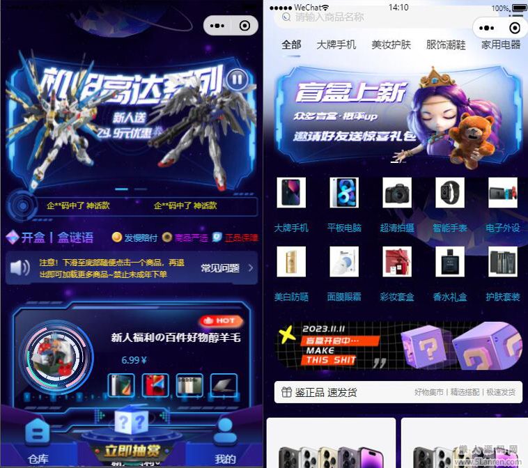 潮玩炫酷ui盲盒商城源码,uniapp,小程序