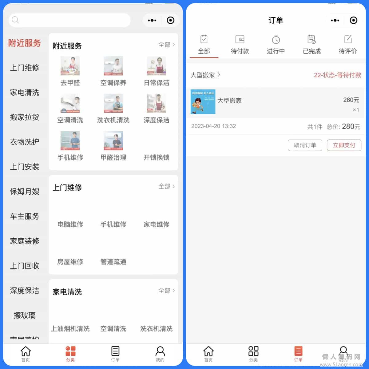 懒人源码网 » thinkphp家政上门预约服务小程序家政保洁师傅上门服务小程序上门服务在线派单安装教程