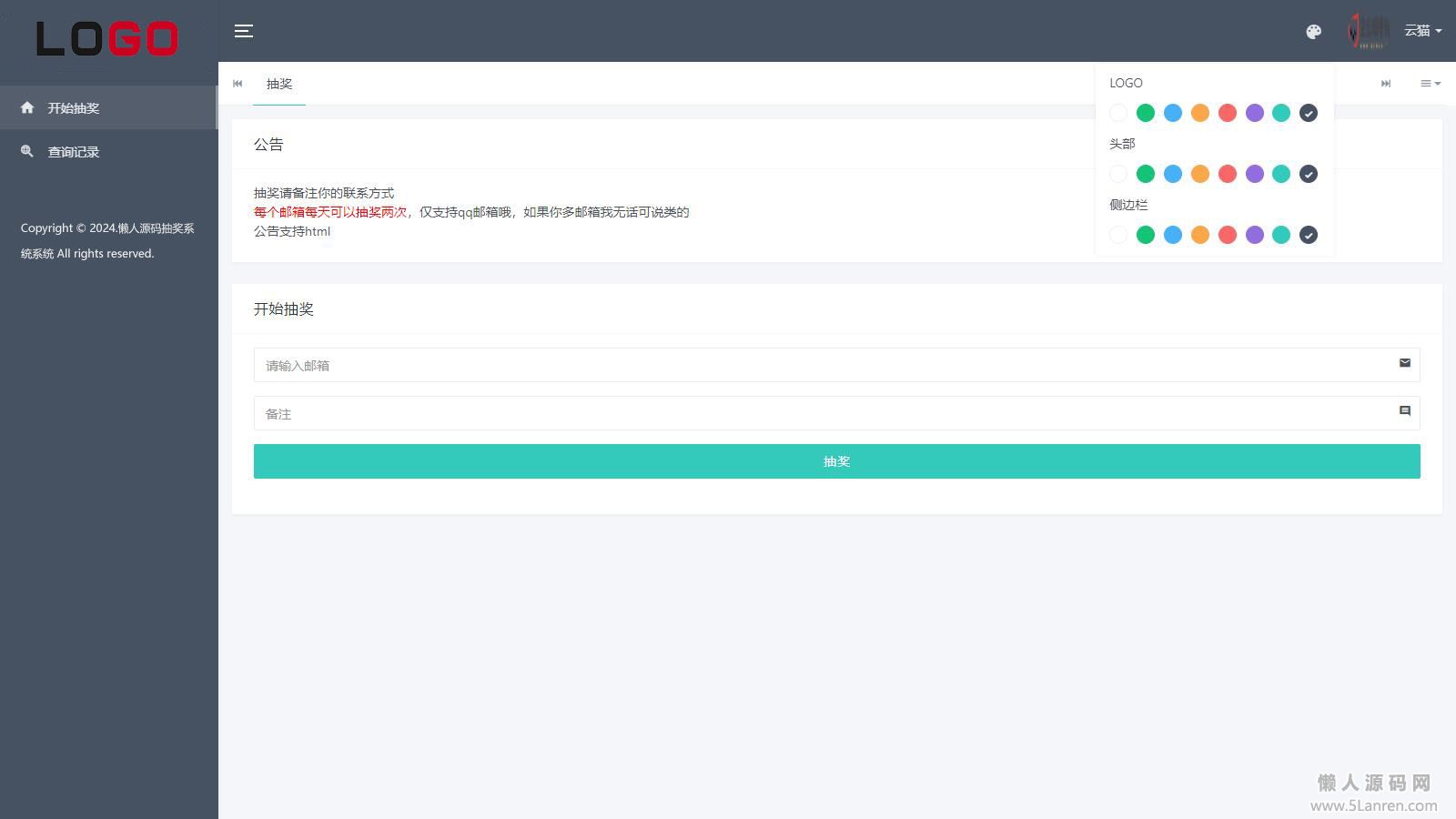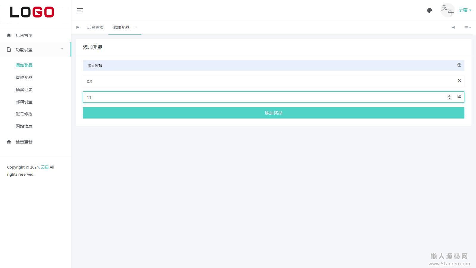 懒人源码网 » 小猫咪抽奖系统1.11(有卡密功能)