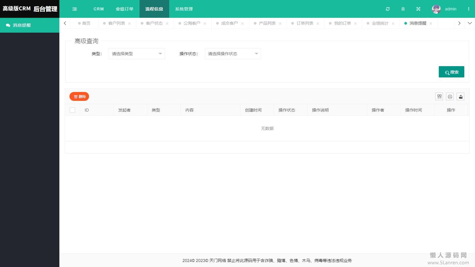 懒人源码网 » 某站价值198的【高级版】CRM客户关系管理系统源码手机版crm跟单销售公司订单合同办公erp客户管理