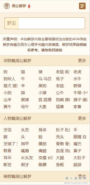 懒人源码网 » 某站价值200的仿《周公解梦》源码 梦境解释查询大全网站模板