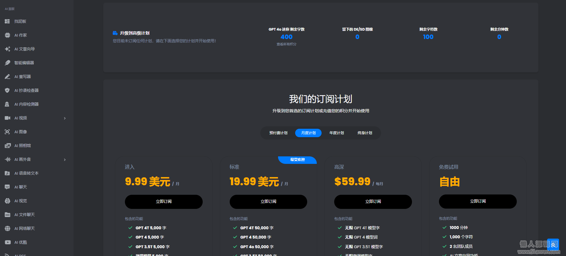 您还可以创建精细的订阅计划,其中包括要使用的模型和大量附加功能。它的写作助手功能适用于任何业务