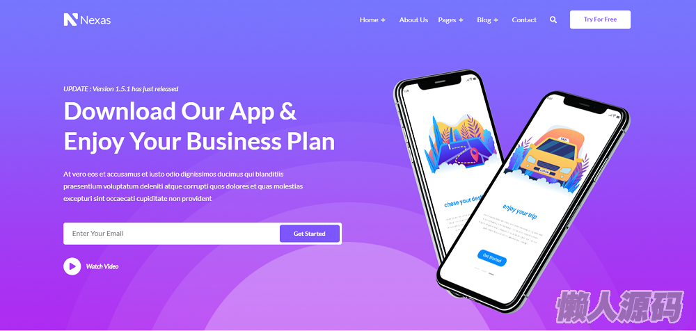 一款蓝色渐变风格的app应用介绍,IT 科技公司 HTML模板 。