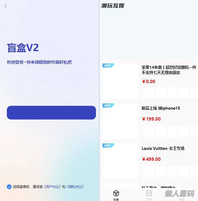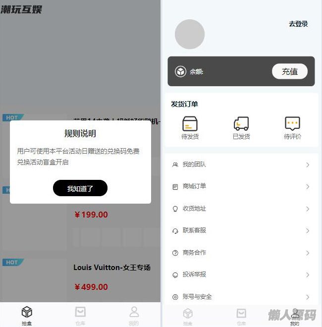 懒人源码网 » 潮乎潮玩盲盒二开版,新增主播玩法