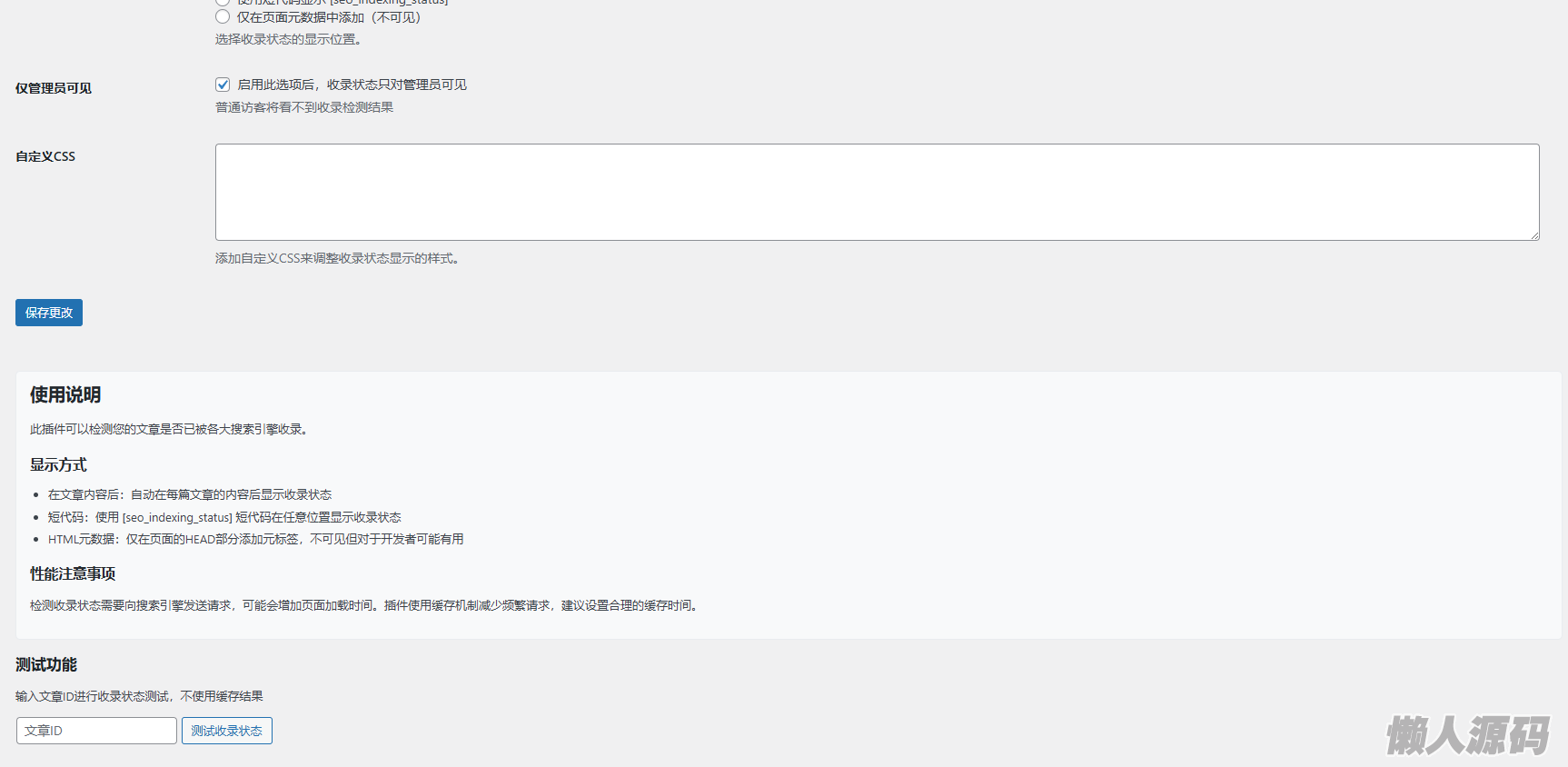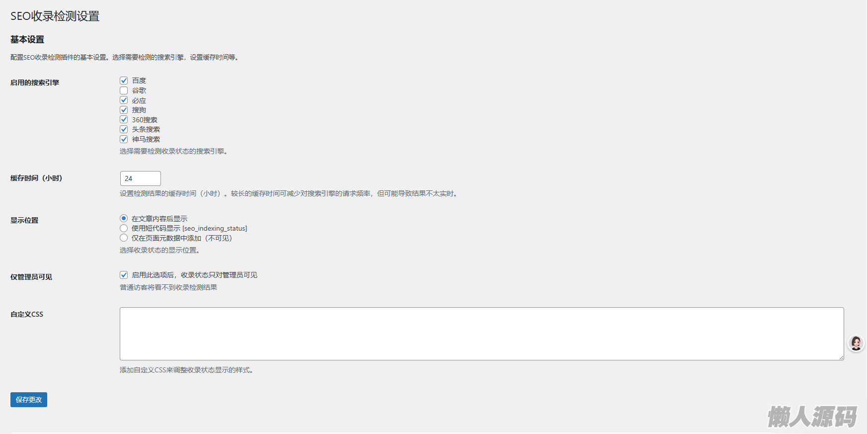 懒人源码网 » wordpress插件文章是否收录状态查询多搜索引擎版多种调用方式