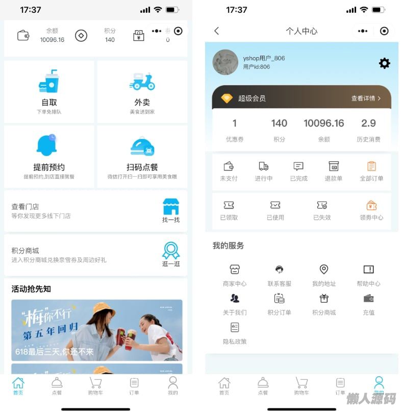 这是款在线点餐(外卖与自取)小程序模式,支持多门店模式,SaaS多租户模式,基础技术Java17,springboot3、vue3、uniapp(vue3)(支持H5、小程序) 采用当前流行技术组合的前后端分离点餐系统: SpringBoot3、Spring Security OAuth2、MybatisPlus、SpringSecurity、jwt、redis、Vue3的前后端分离的系统。包含外卖与自取、商品管理(多规格sku)、店铺管理、云小票打印、图片素材库、订单管理、积分兑换(积分+金额)、、优惠券、、多门店、公众号、商家中心、提前预约、桌面扫码点餐(单人或者多人协同)、收银台(支持扫码与扫码盒子收款)、会员卡、桌台点餐等功能。更适合企业或个人二次开发.
