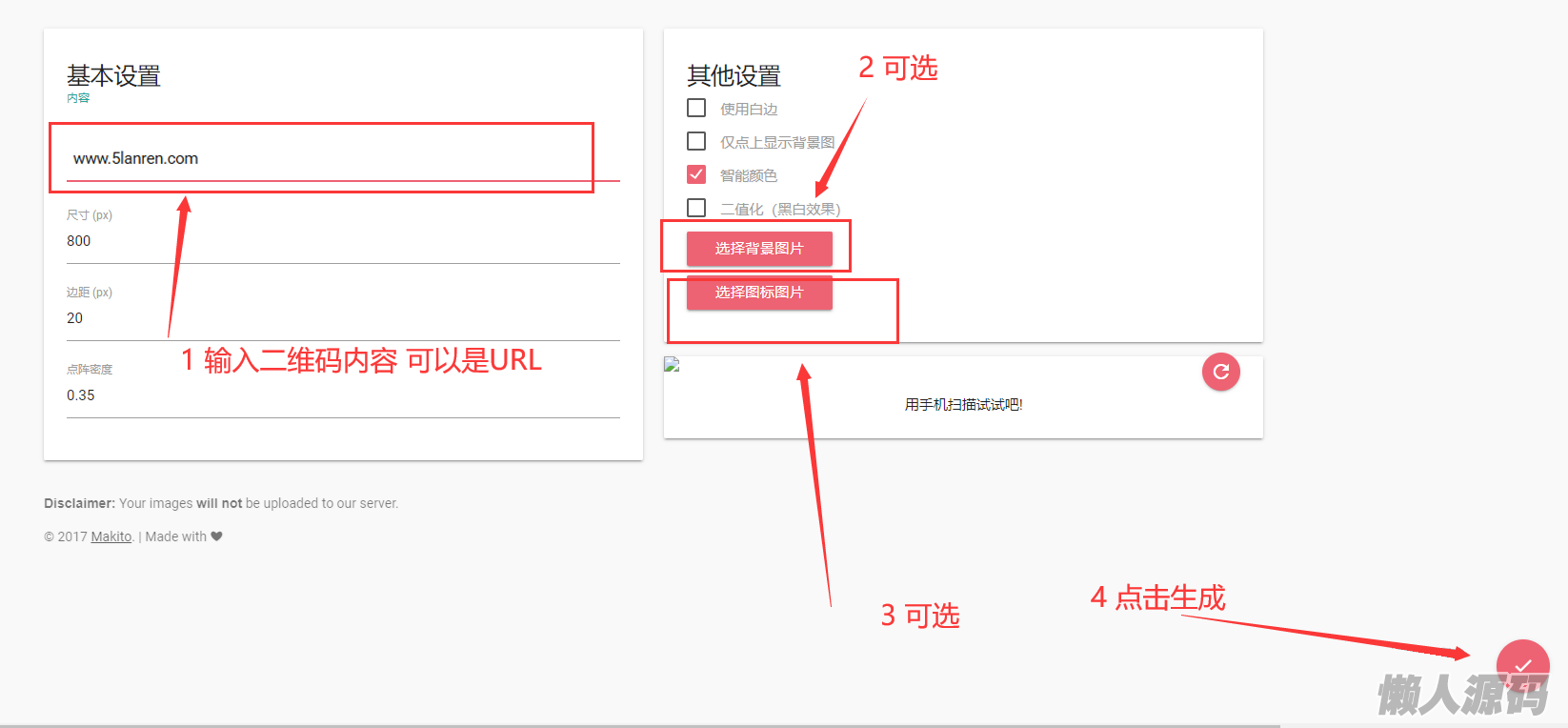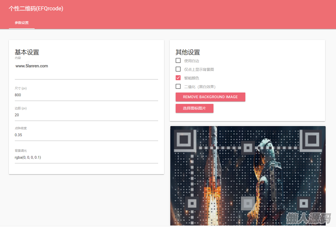 懒人源码 » 个性二维码生成源码,给二维码带背景图片