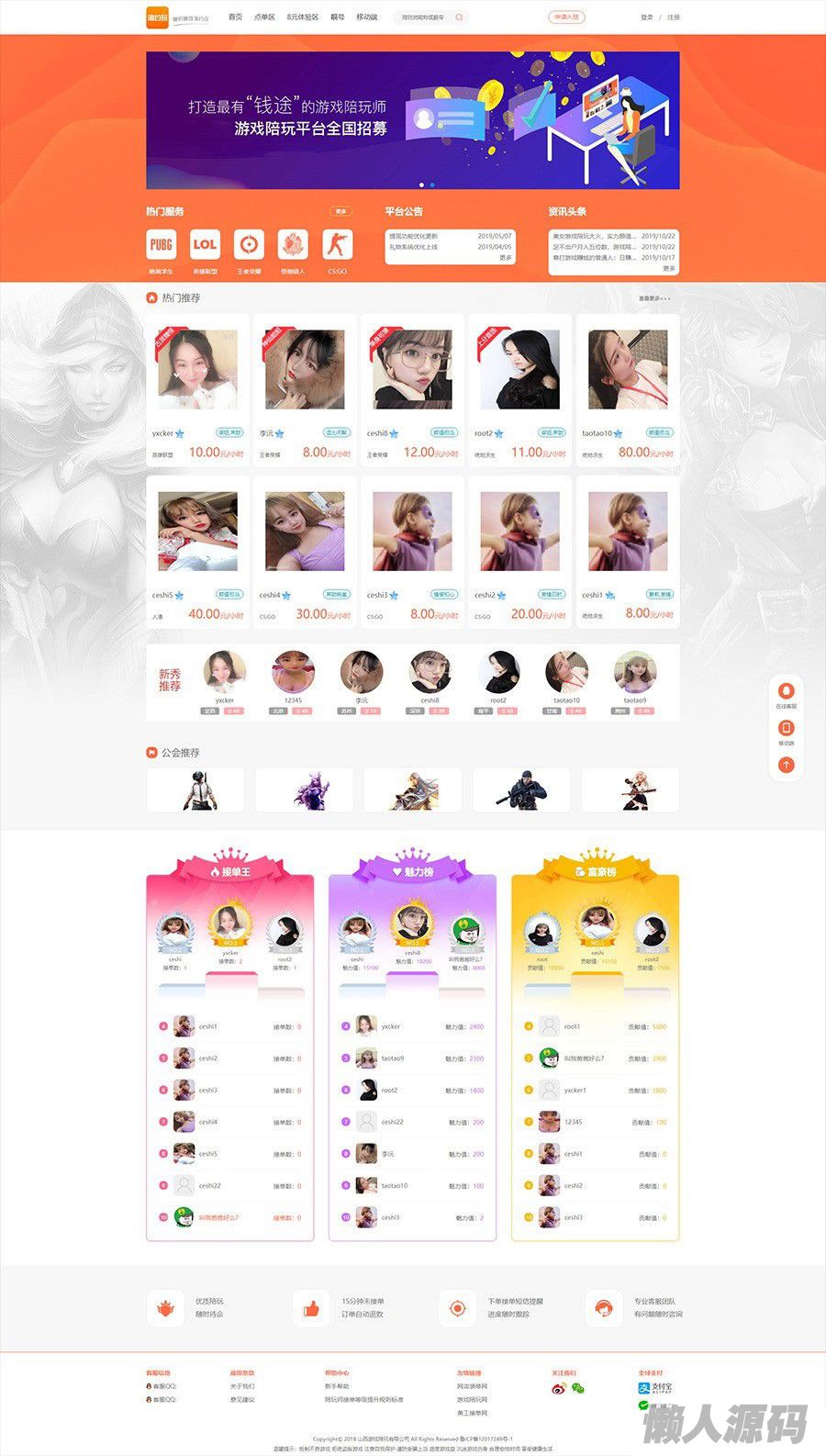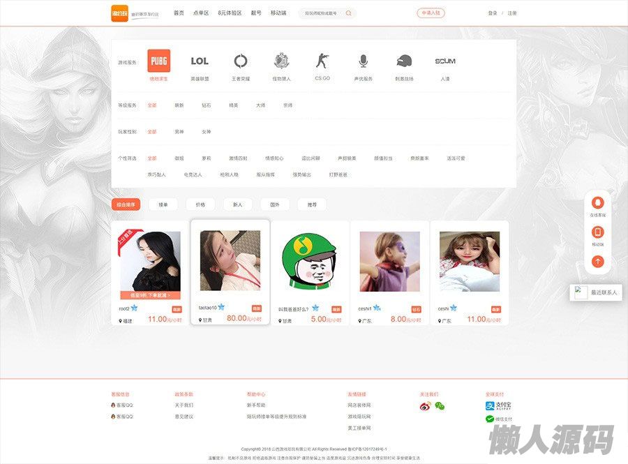 懒人源码 » PHP游戏陪玩平台源码美女约玩系统 WAP手机端自适应