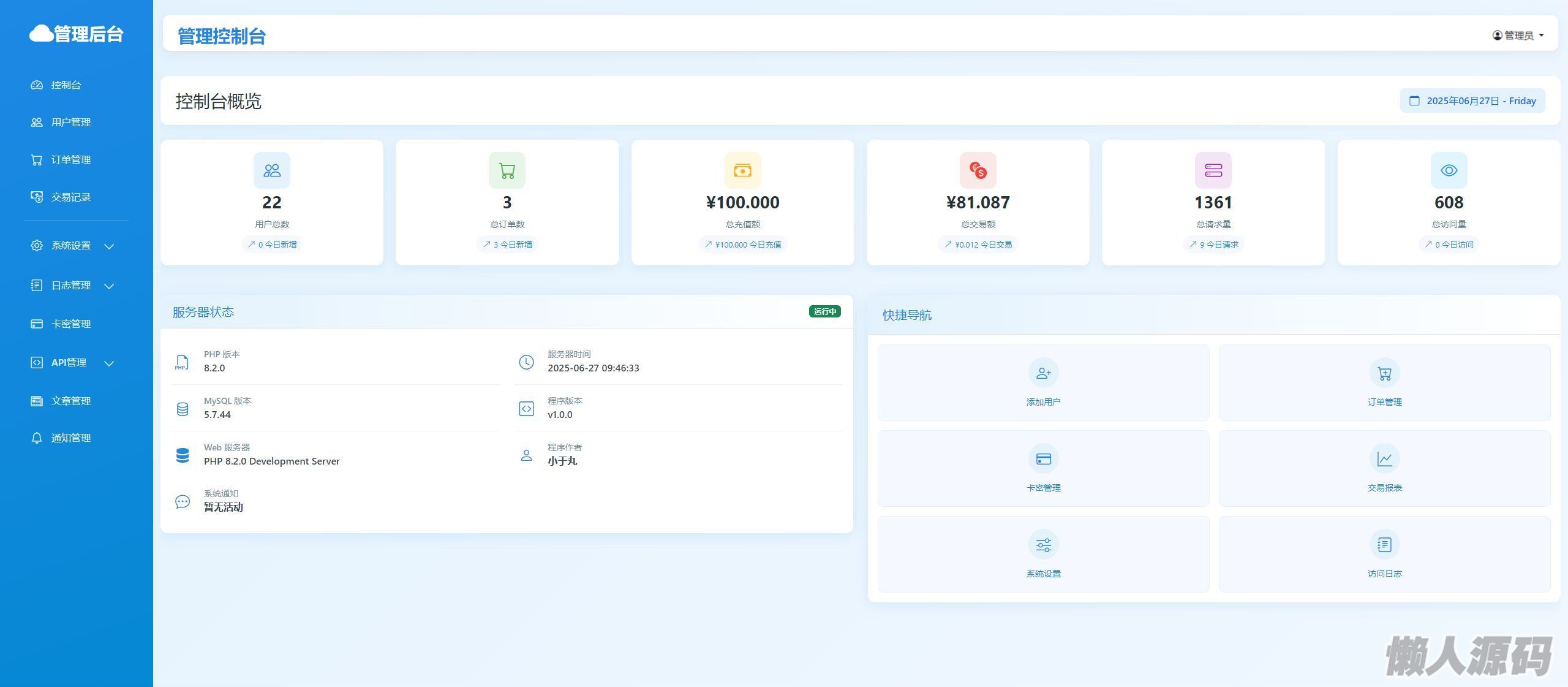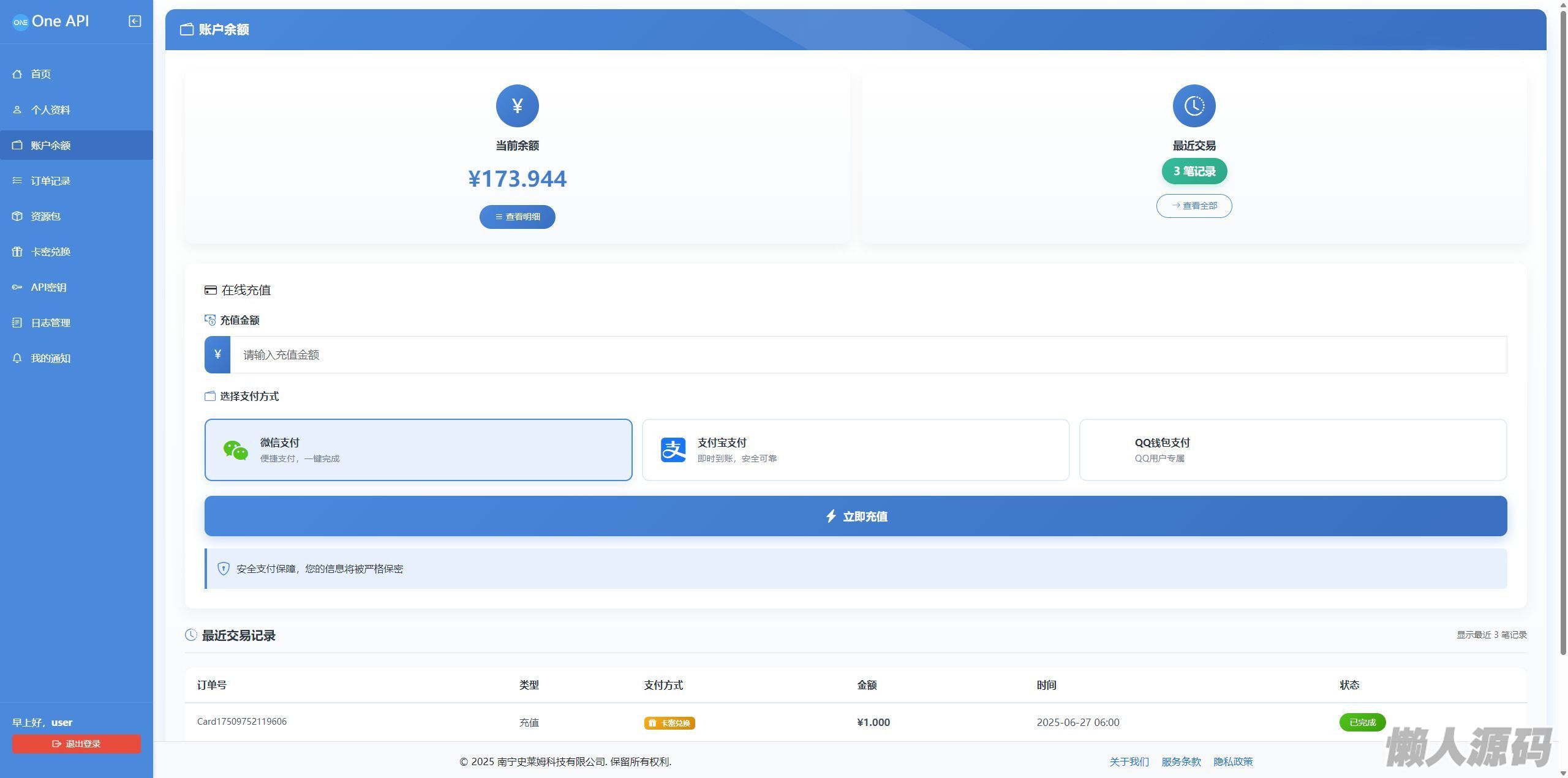 支持卡密兑换和余额