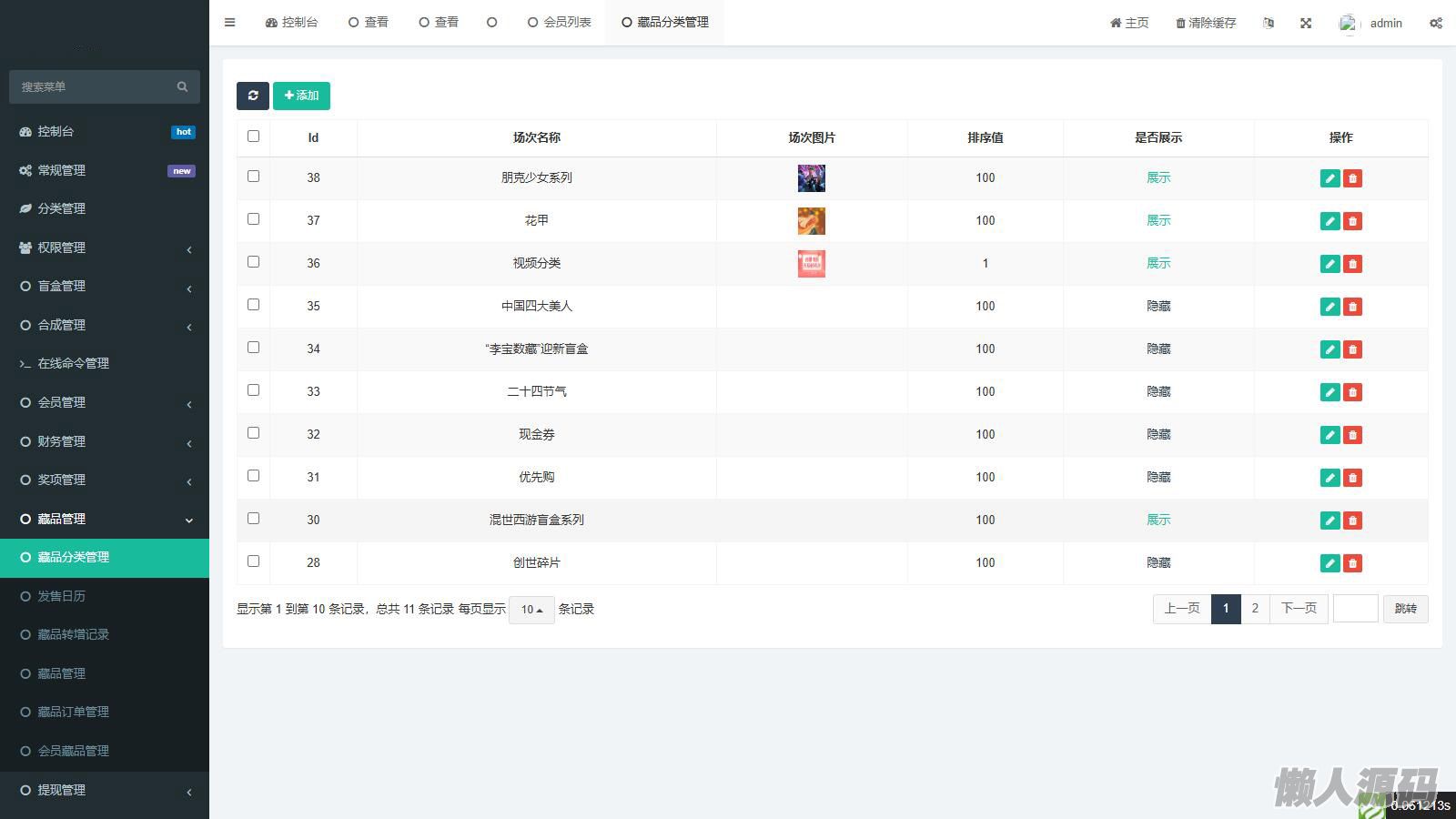 5.盲盒:购买盲盒随机抽取藏品,后台可设置盲盒中的