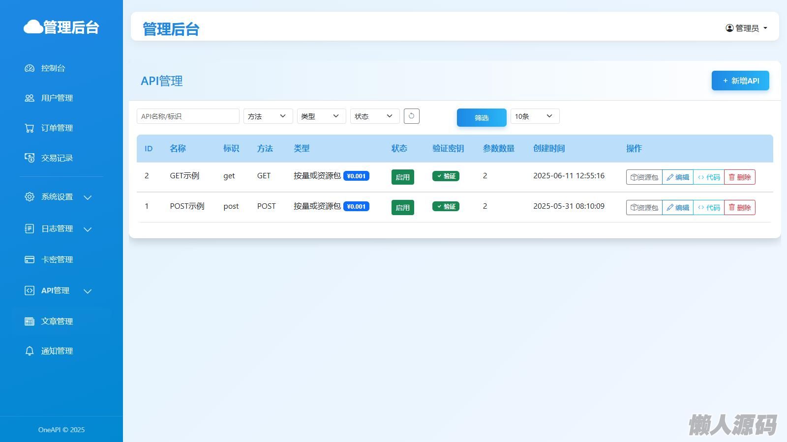 懒人源码网 » OneAPI计费系统开源版1.2.0