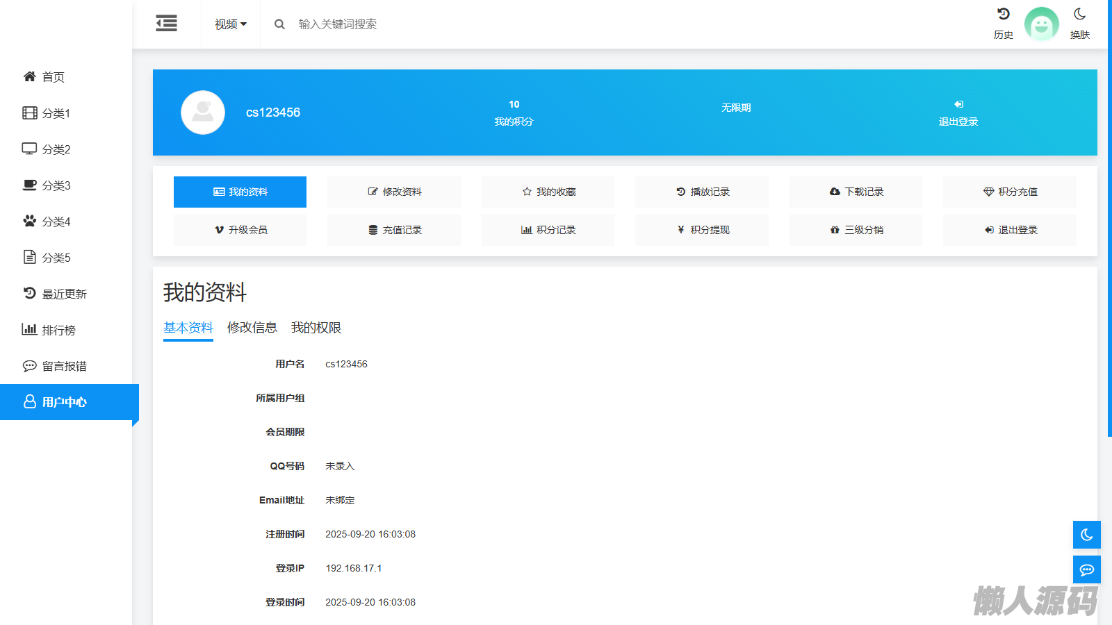 4、用户中心等功能模板进行了优化处理,风格,同样自适应设备。