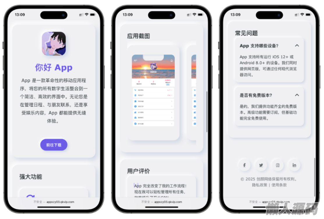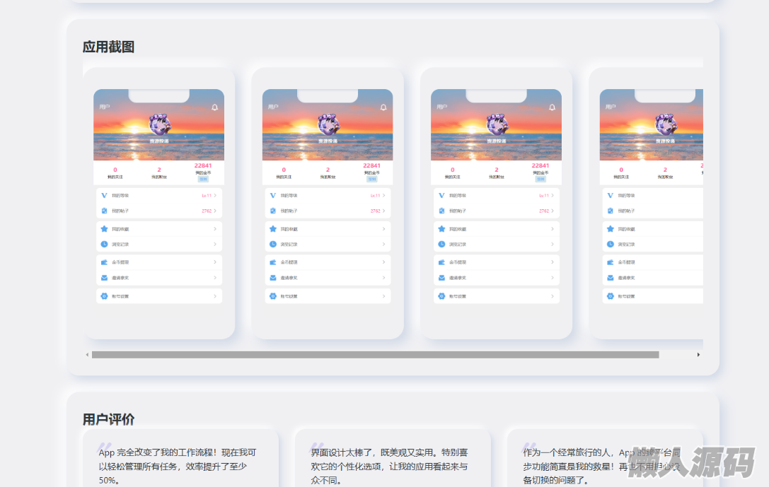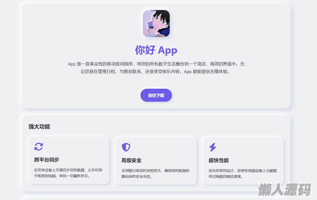 懒人源码网 » 简约漂亮的APP下载页源码 前端采用HTML+CSS拟态风格
