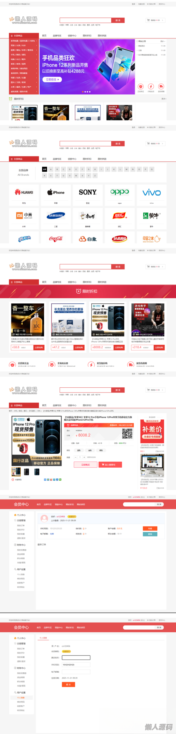 懒人源码网 » 个人商城二开 PC+WAP B2C商城系统源码 拼团拼购 优惠 折扣 秒杀源码