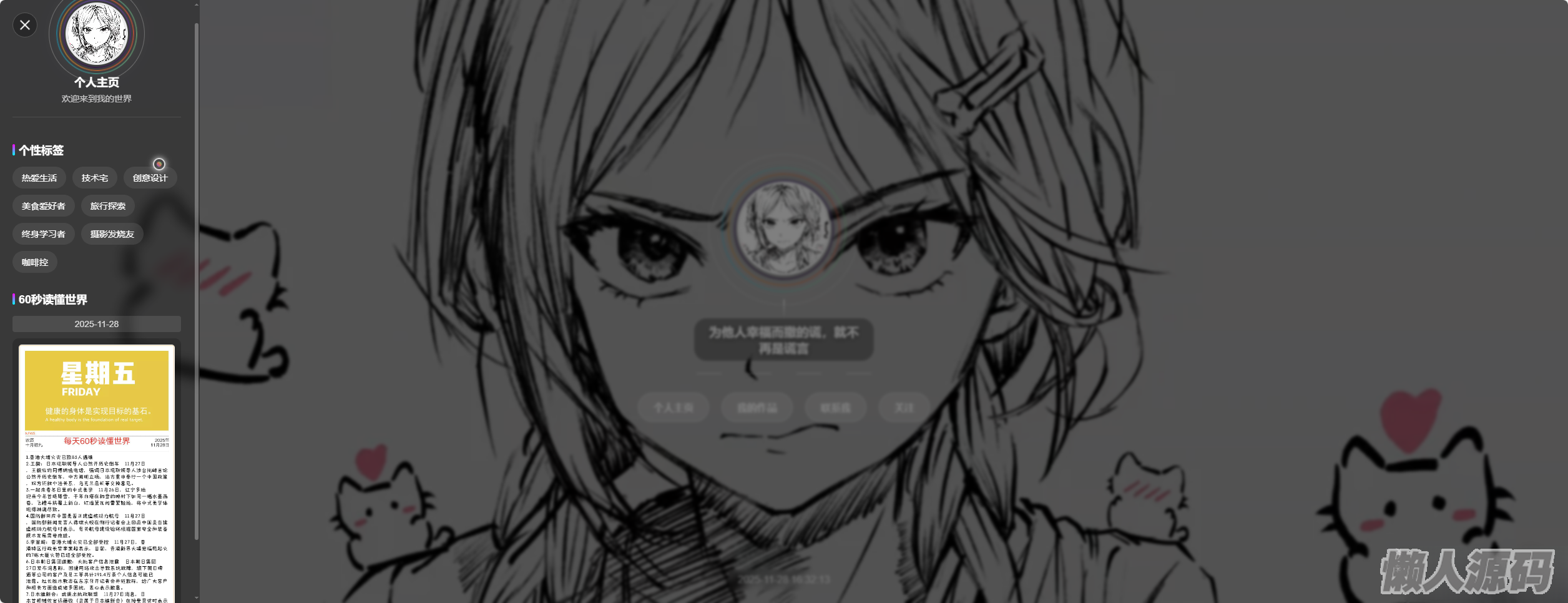 懒人源码网 » 素颜动态个人主页卡片html源码