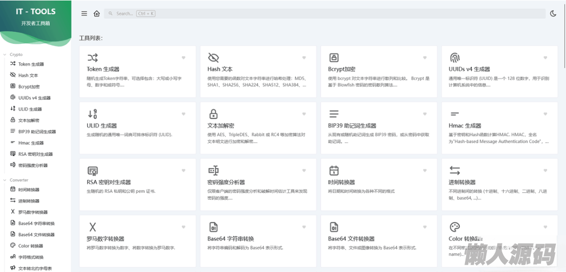 IT Tools是一个免费且超全开发人员在线工具,对于开发人员和 IT 工作人员来说非常有用的工具,
