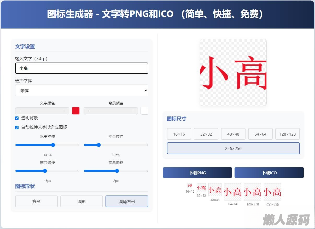 懒人源码 » html图标生成器-文字转PNG和ICO 简单快捷 自动拉伸