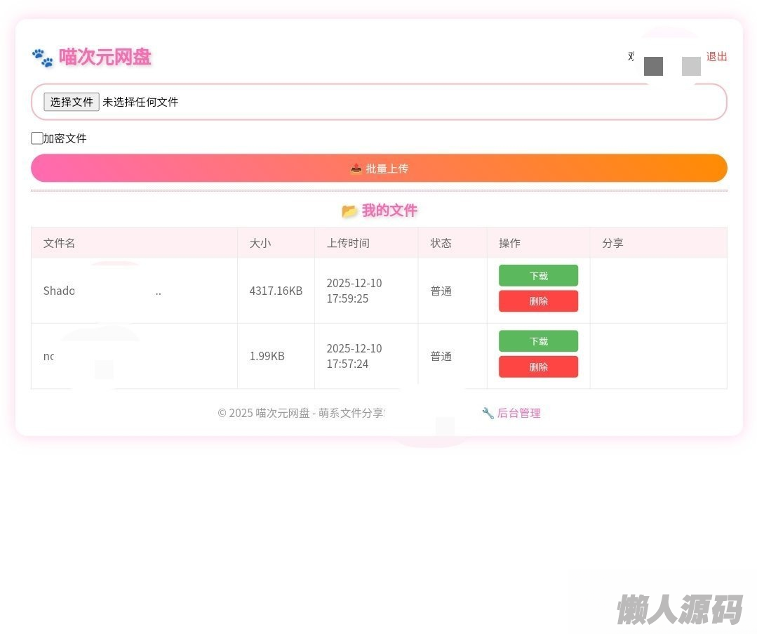 懒人源码 » 喵盘-一个开源的个人网盘系统