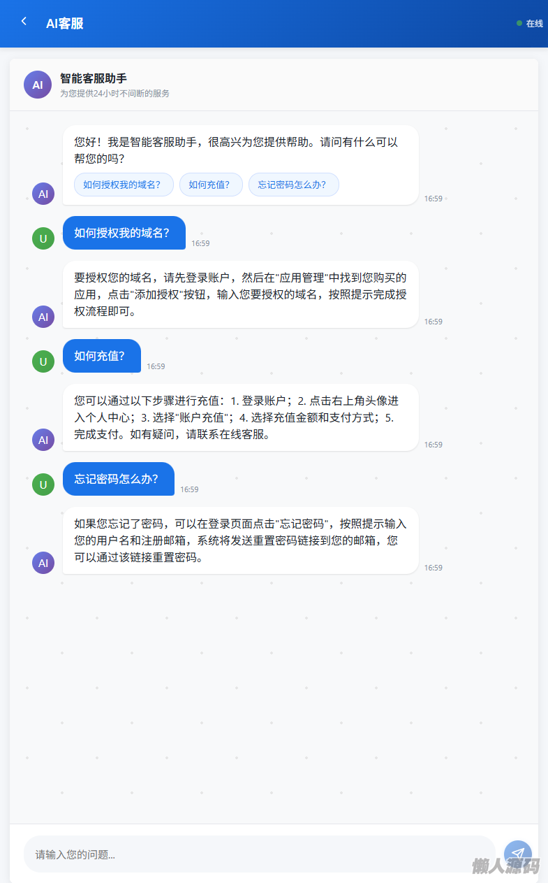 懒人源码 » 爱授权系统-AI在线客服系统插件开源