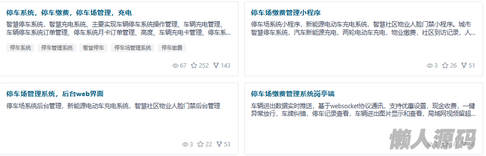 懒人源码网 » 无人值守停车、充电系统(含小程序源码、后端源码、岗亭端源码)