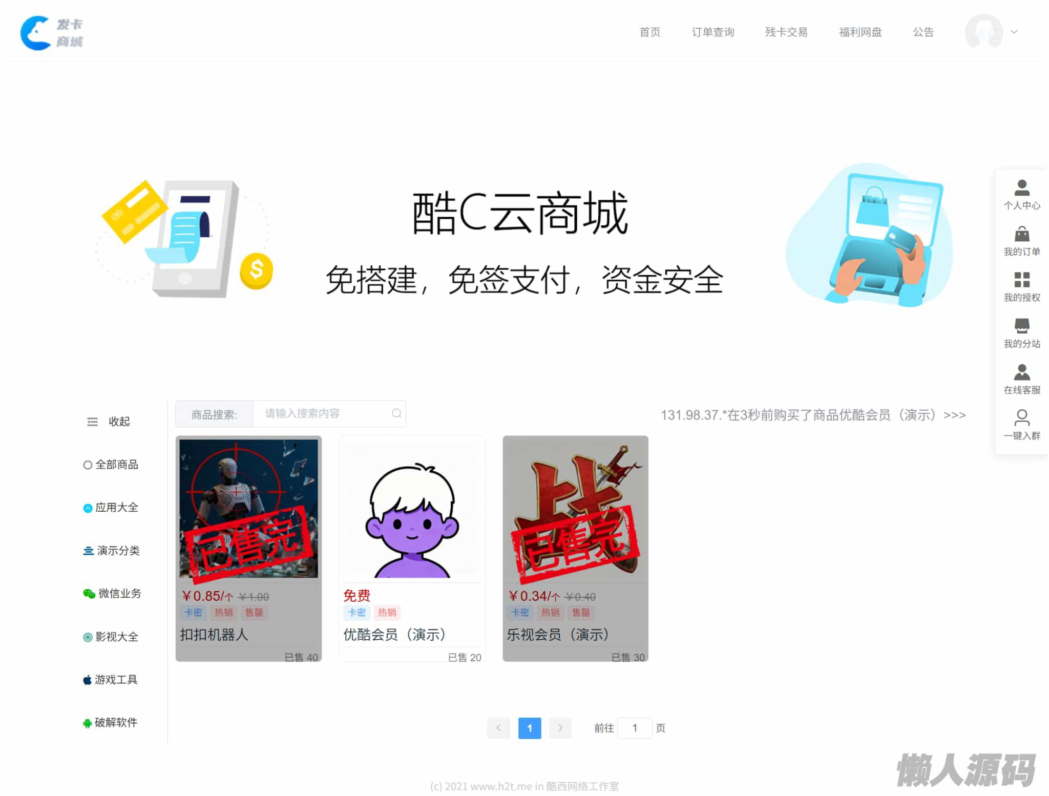 酷C发卡网多种支付支持分站 易语言开源