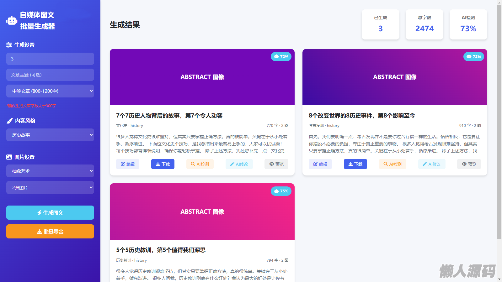 懒人源码网 » 自媒体批量图文生成器 HTML代码