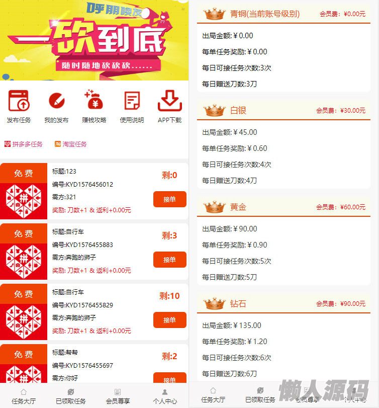 懒人源码 » ThinkPHP帮忙砍价任务赚钱源码 可封装APP