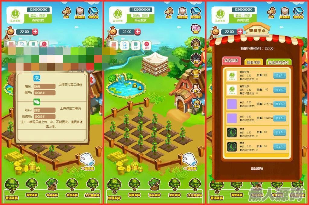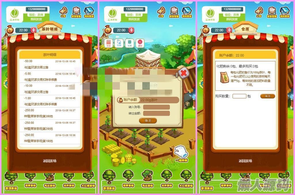 区块链模式茶场游戏源码带商城 虚拟农场+在线商城 带系统交易