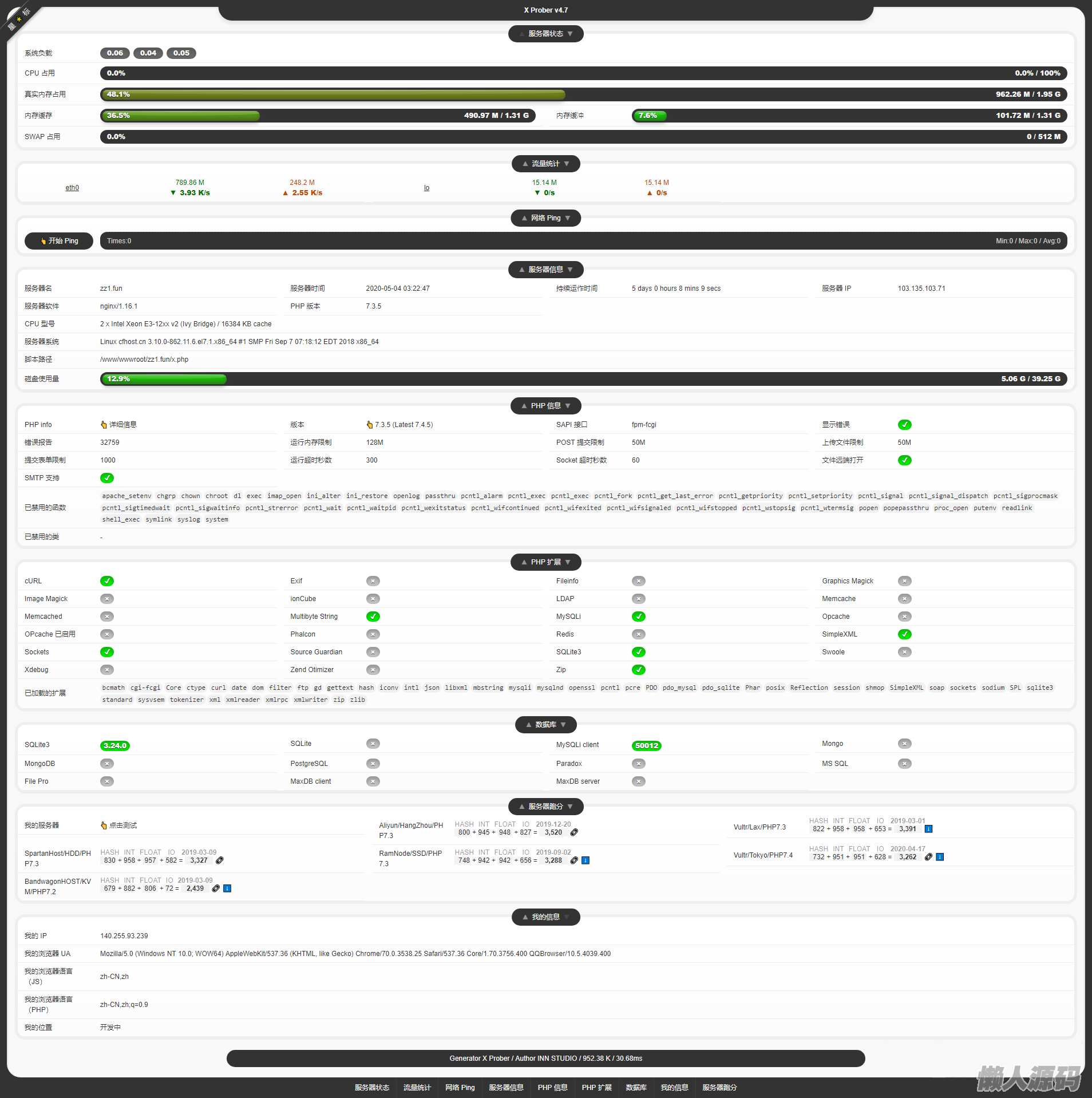 前两天看见有人分享的状态页面,之前本人用的是ServerStatus,我发现这个免费开源PHP探针——x-prober更加精致好看。