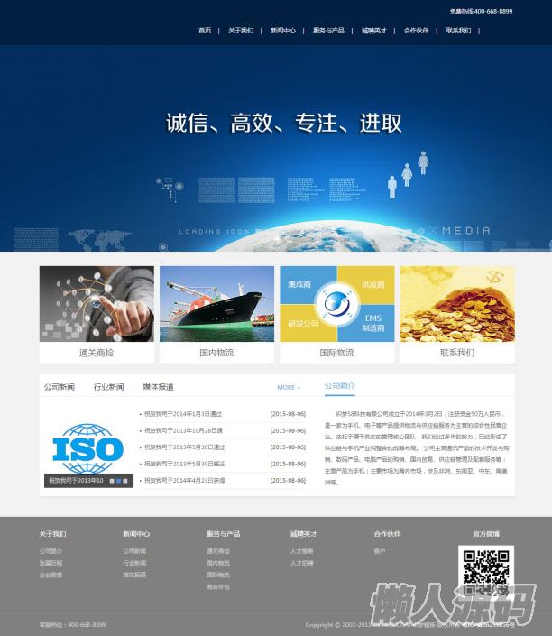 蓝底色风格大气,页面干净,整体简单,几乎适合所有的服务行业使用, 整站蓝色搭配,干净大方.此款织梦模板采用UFT-8内核制作