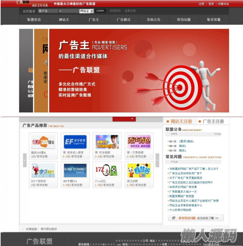 诚丰 广告联盟 系统的单台每天可以负载至少2000万个PV流量,并且还支持多台的负载平衡。 它适用于常见的 广告联盟 ,移动广告联盟等,并支持CPC,CPV,CPA,CPS和其他计费方式。 支持各种广告效果,例如富媒体广告,混合广告,直接链广告以及用于修改广告效果代码的开放接口。 默认情况下,它支持程序缓存, 数据库 缓存, 数据库 读写分离,并支持异步广告代码传递,CDN,HTTPS等,维护简单,无需技术。