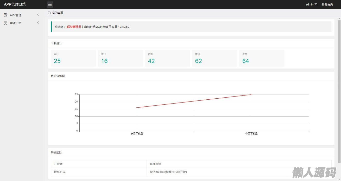 APP 页源码 -带后台,带统计,带数据分析图,可一键编辑APP信息,此为1.0版本,后期会推出更多的新功能,尽请期待.