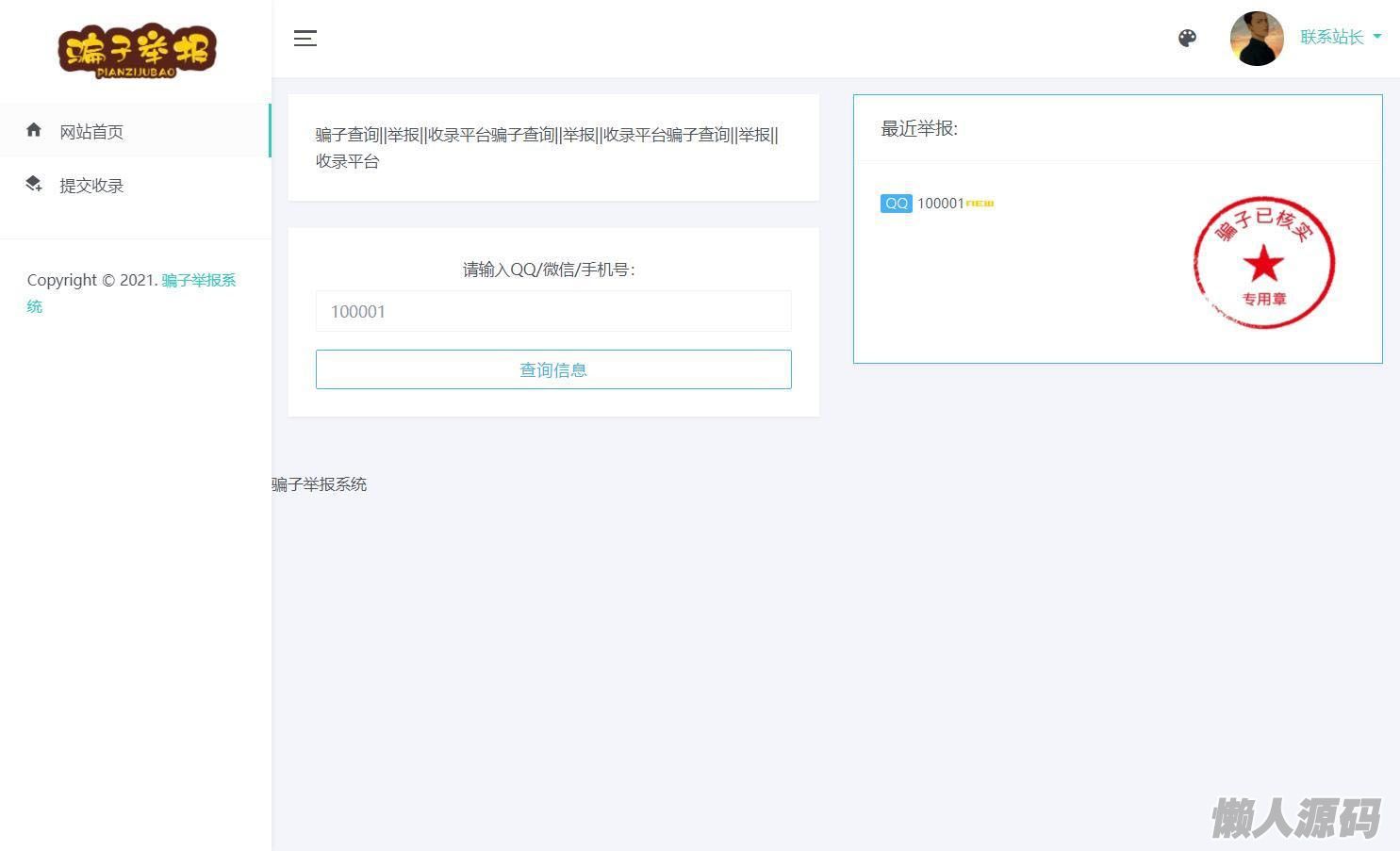 懒人源码 » 骗子举报查询系统高级版源码