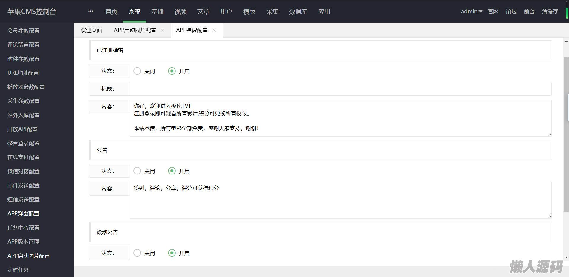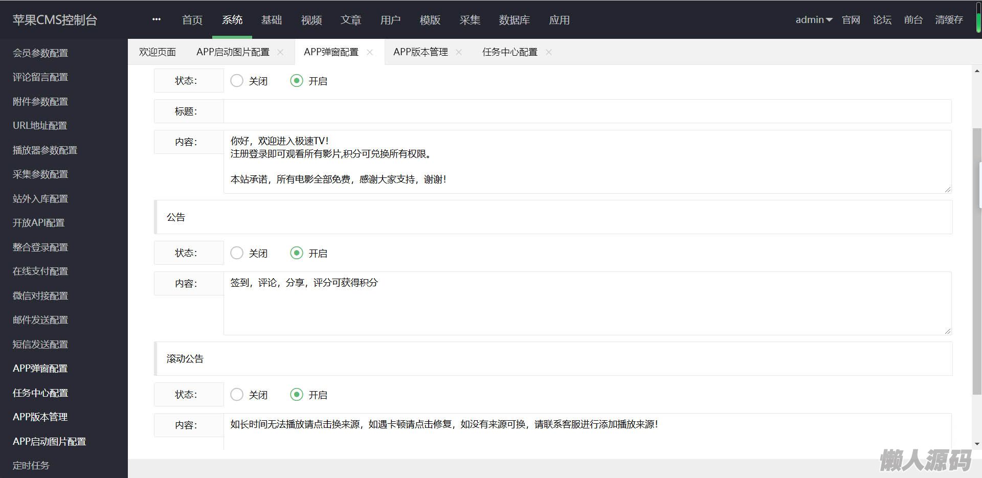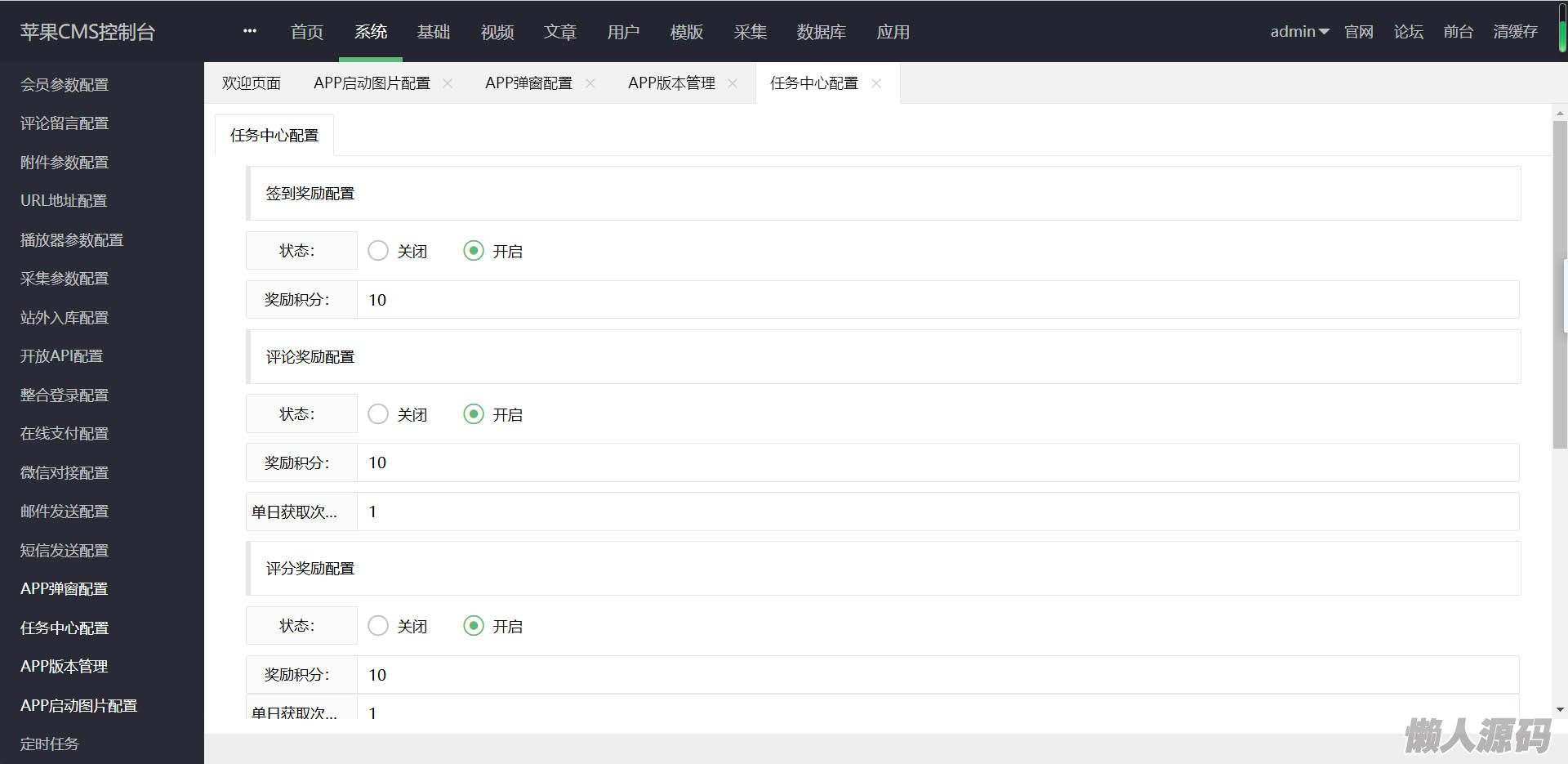 (9)任务系统(无限裂变)(10)后台支持对接云转码,支持用第三方工具全 自动采集 入库