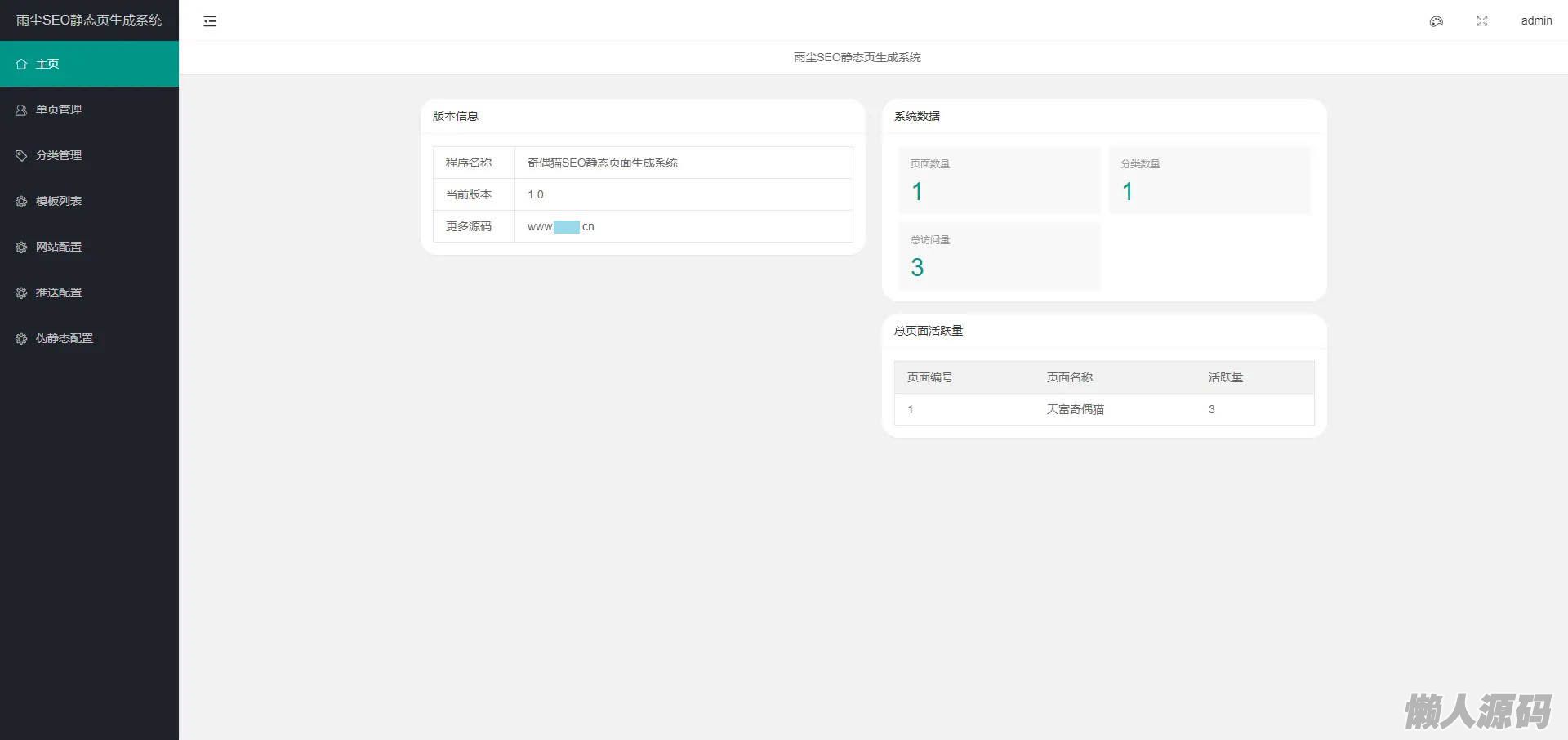 懒人源码 » 雨尘超级SEO静态页面生成系统源码