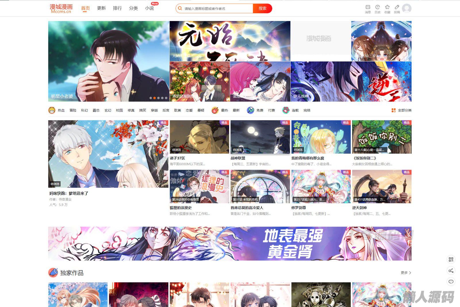 懒人源码 » 漫城CMS免费漫画+小说CMS系统