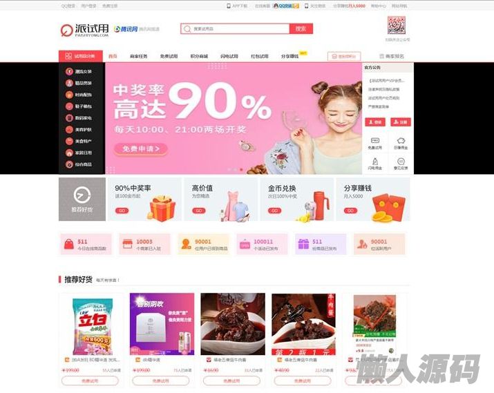 懒人源码 » ThinkPHP仿每推推51领啦试客系统源码 PC+WAP+APP原生代码 自带5套精美模板