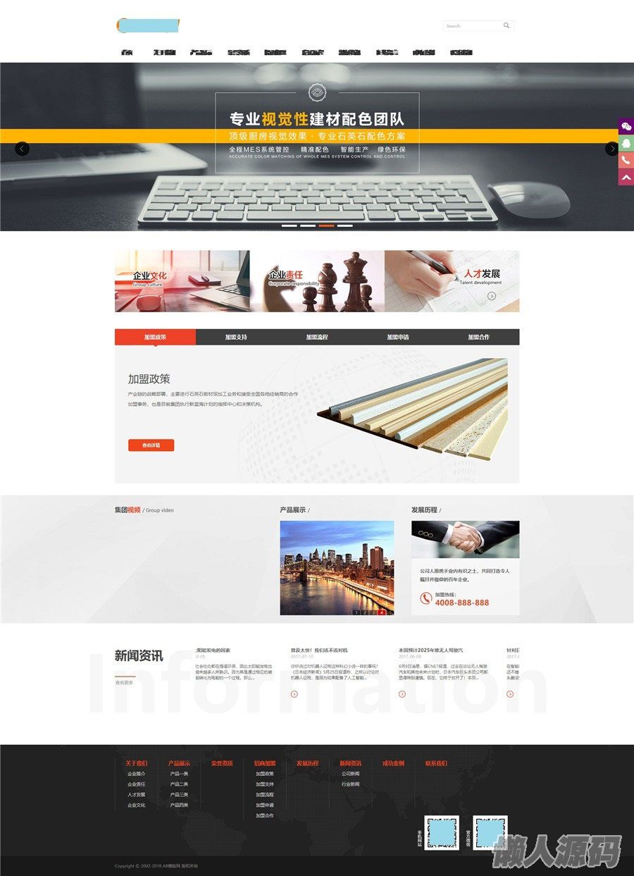 效果相当的炫酷,相当简洁大气高端。适用于建材 网站源码 、石英石网站模版;